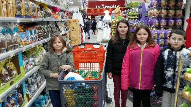 Achat des œufs de Pâques ce matin avec Océane, Zélie, Louna