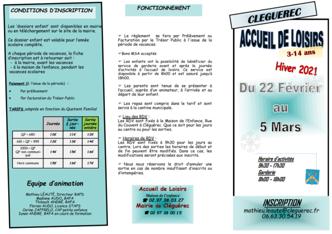 ACCUEIL DE LOISIRS | DU 22 AU 05 MARS | CLEGUEREC