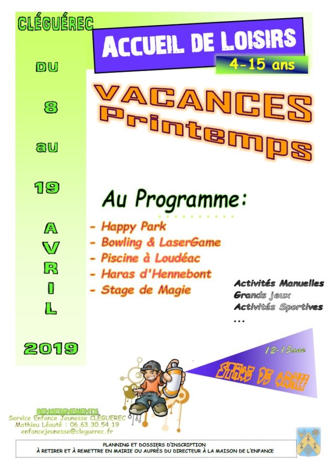 Contact : 06.63.30.54.19 ou enfancejeunesse@cleguerec.fr