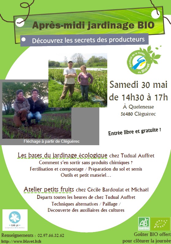 Cette journée jardinage est organisée dans le cadre du Contrat de Bassin Versant du Blavet morbihannais par le Syndicat de la Vallée du Blavet et le Groupement des Agriculteurs Biologiques.