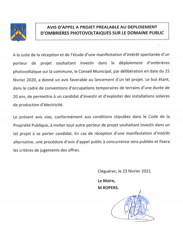 AVIS D’APPEL À PROJET | CLÉGUÉREC