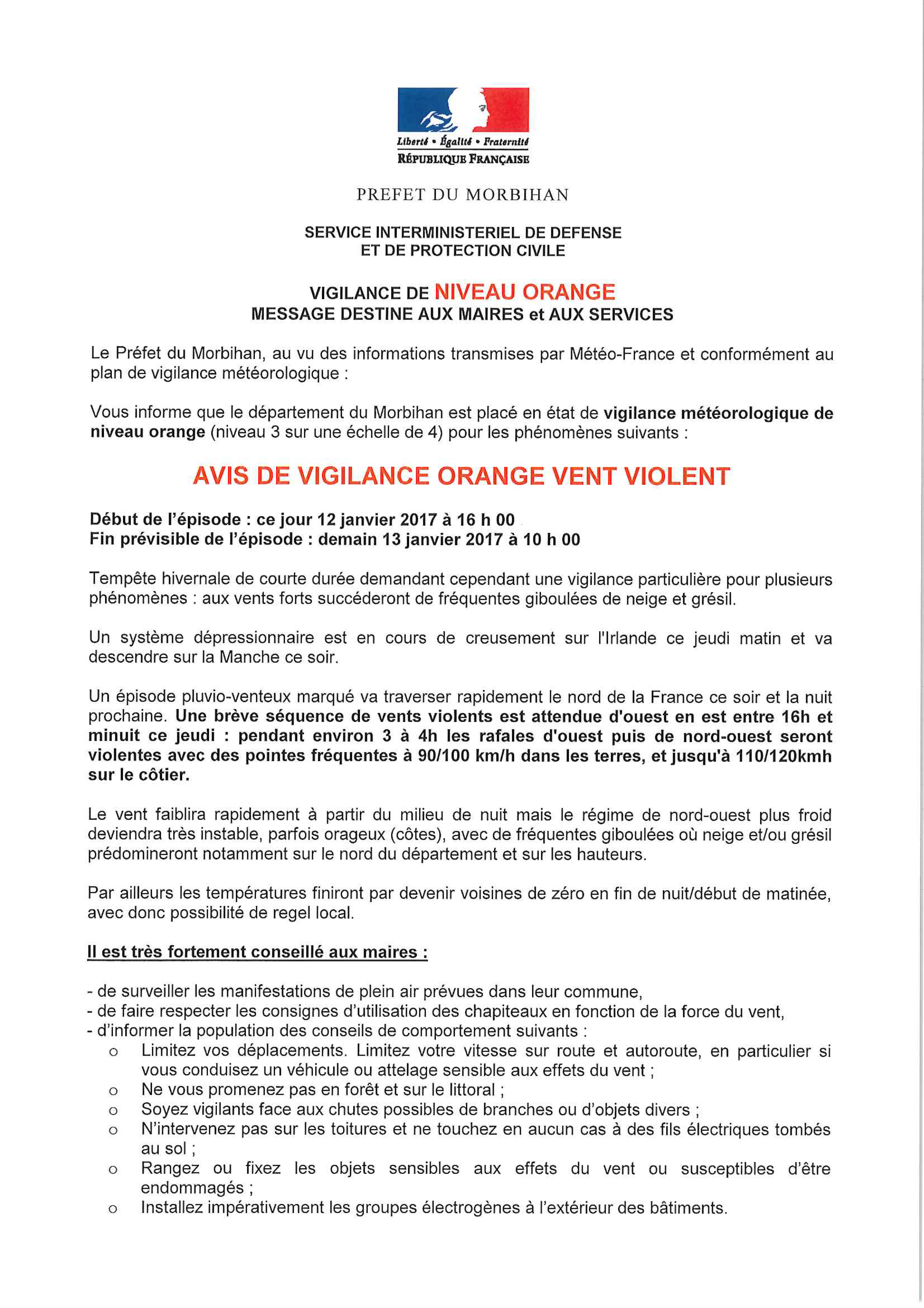 AVIS DE VIGILANCE ORANGE