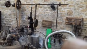 Ils ont trié, classé, nettoyé, débloqué, dérouillé tous ces témoins du passé. Tout, ou presque, a trouvé une place et a recommencé à servir : un foyer a été réalisé, le soufflet lui envoie de l’air, les moteurs électriques bourdonnent (sans encombre après 40 ans de léthargie), le marteau-pilon frappe à un rythme frénétique, la meule et la perceuse mordent dans le métal et l’enclume chante à nouveau sous les coups du marteau. Un établi a été construit, la panoplie d’outils est exposée sur des panneaux disposés au dessus de l’établi.