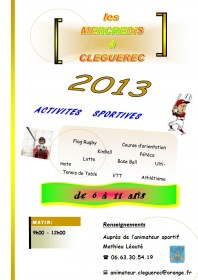 Pour tous renseignements, contactez l’animateur sportif Mathieu Léauté au 06.63.30.54.19 ou par mail à l’adresse animateur.cleguerec@orange.fr