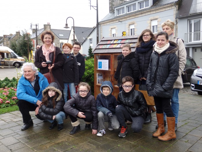 1) Dans un premier temps, Joël a énoncé la liste des commerçants, services et professionnels de Cléguérec, démarchés par les enfants pour le dépôt de livres dans le cadre de l’opération « Livres Voyageurs ». Puis, les enfants ont lu le texte proposé par Guillaume de la médiathèque qui explique les principes de ces échanges de lectures par le biais des boîtes à livres.