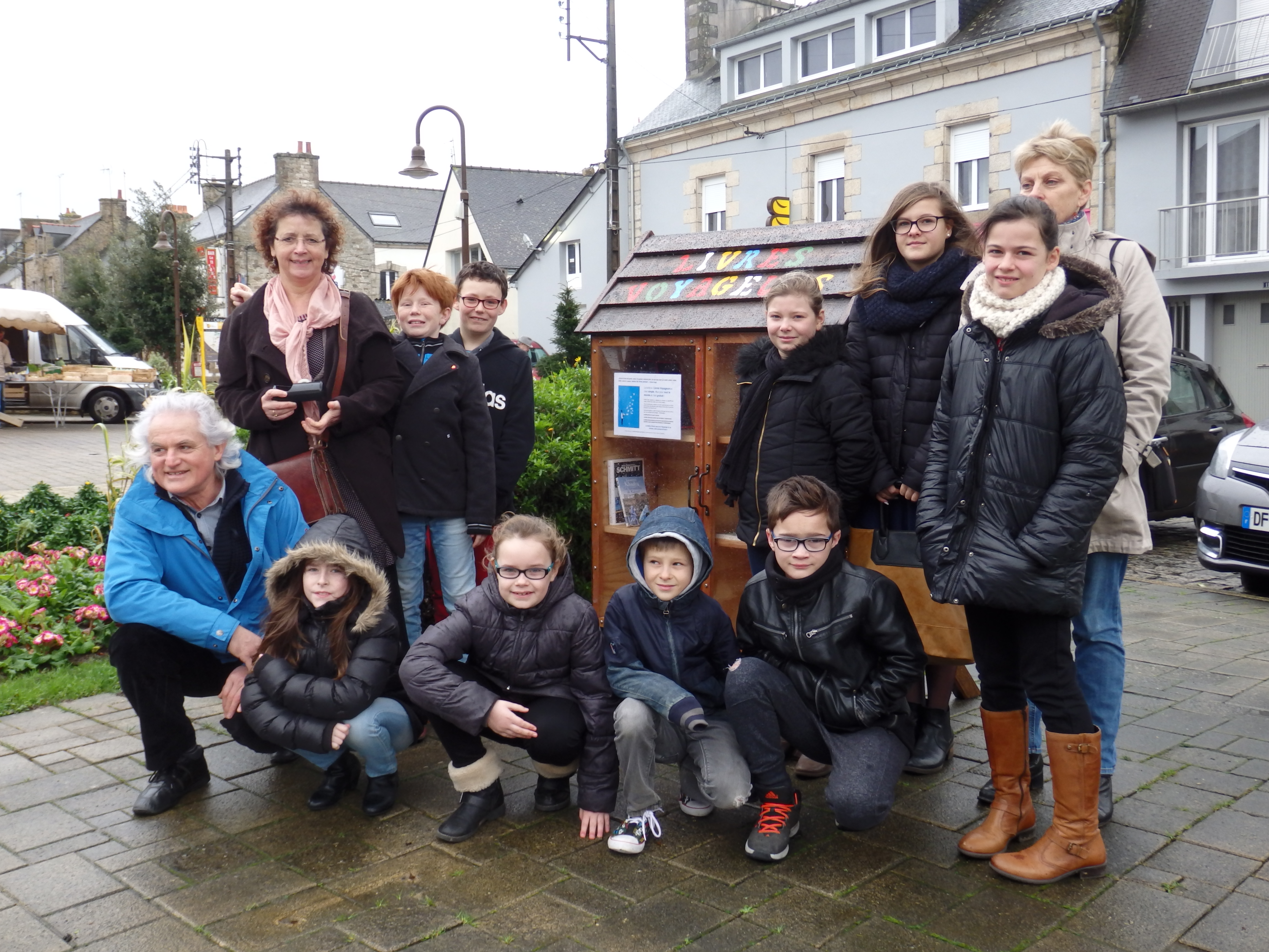 l’opération « Livres voyageurs » et installation des livres dans la boîte à livres sur la place