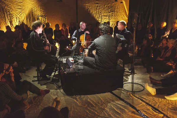 Jean Louis LE VALLÉGANT // directeur artistique, Saxophone . Jérôme KERIHUEL // tablas préparés . Erwan MARTINERIE // violoncelle . Yann LE CORRE // accordéon, accordina