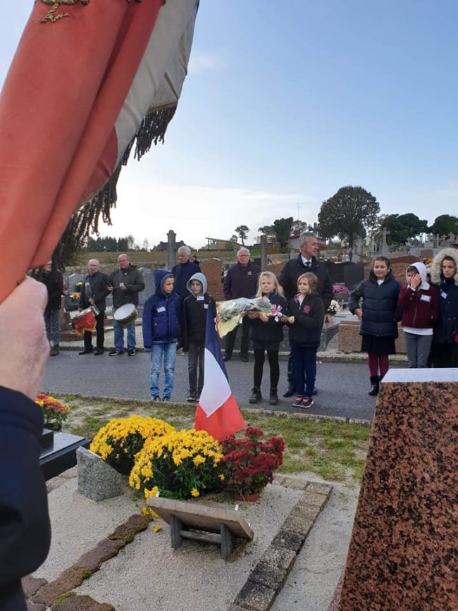 Les 12 enfants du Conseil municipal ont déposé chacun une fleur bleue, comme un bleuet, au pied du monument, pour symboliser la mémoire et la solidarité intergénérationnelle envers les victimes de la Première guerre mondiale.