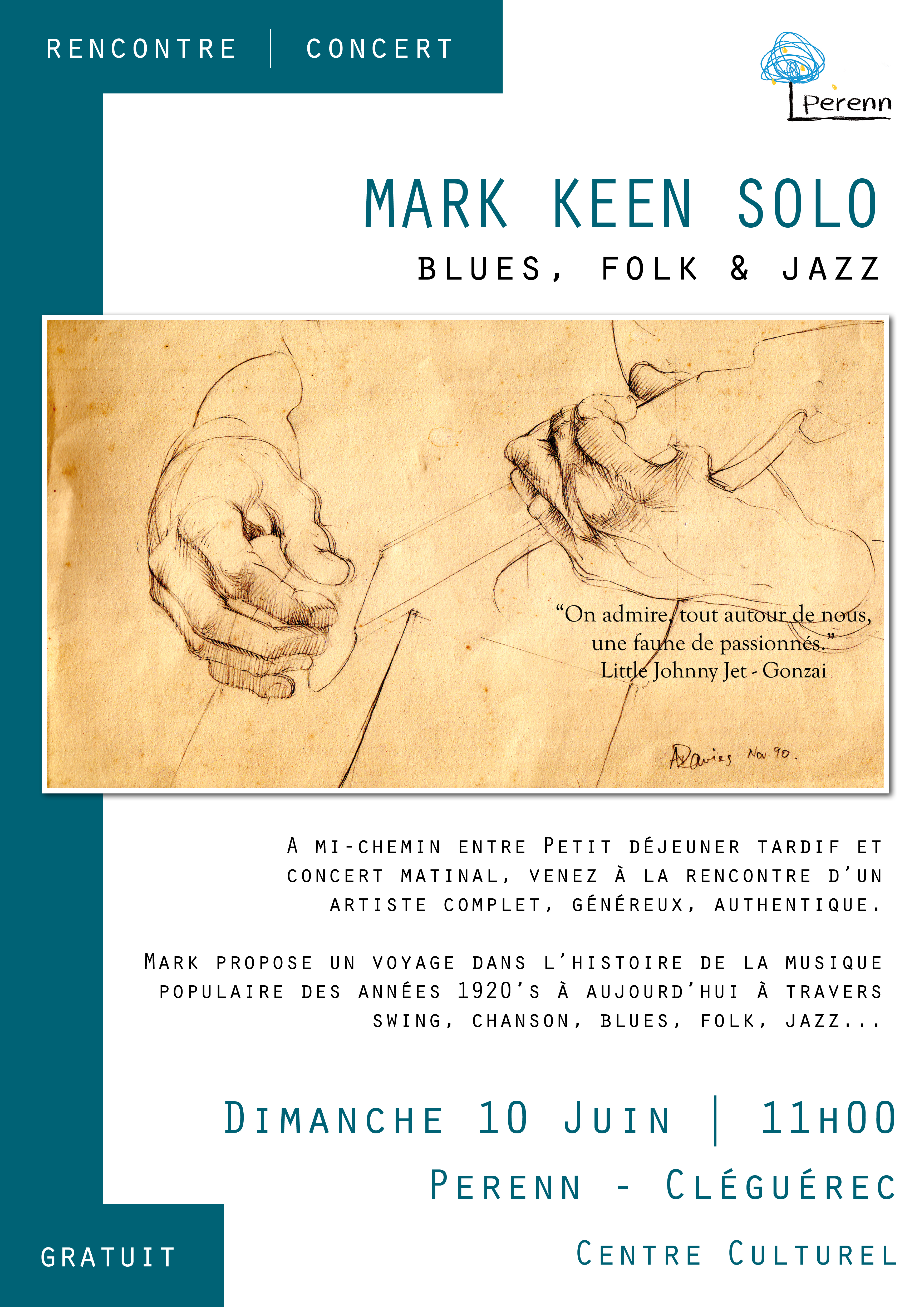 Mark propose un voyage dans l’histoire de la musique populaire des années 1920’s à aujourd’hui à travers swing, chanson, blues, folk, jazz…
