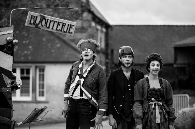Boutique de rue imaginaire et foutraque pour trio de clowns