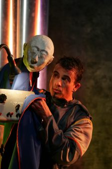 « Ce spectacle a connu beaucoup d’évolutions et de nouvelles propositions artistiques et techniques. Alors, à chaque session de travail, la mise en scène et la direction d’acteur ont évolué avec les nouveaux objets à manipuler, avec le décor en construction qui l’enveloppe, avec les lumières qui l’éclairent et se précisent, avec la musique qui l’enrobe et qui évolue, avec le costume qui le grime. Un travail de mise en forme de toutes les idées, de réglages dramaturgiques…..