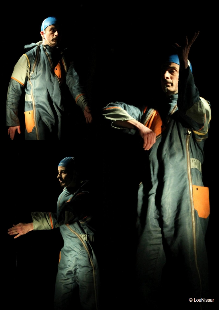 « Ce spectacle a connu beaucoup d’évolutions et de nouvelles propositions artistiques et techniques. Alors, à chaque session de travail, la mise en scène et la direction d’acteur ont évolué avec les nouveaux objets à manipuler, avec le décor en construction qui l’enveloppe, avec les lumières qui l’éclairent et se précisent, avec la musique qui l’enrobe et qui évolue, avec le costume qui le grime. Un travail de mise en forme de toutes les idées, de réglages dramaturgiques…..