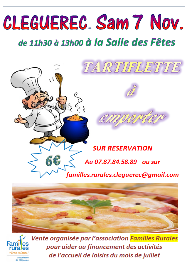 Familles Rurales – Tartiflette à Emporter – Samedi 7 Novembre