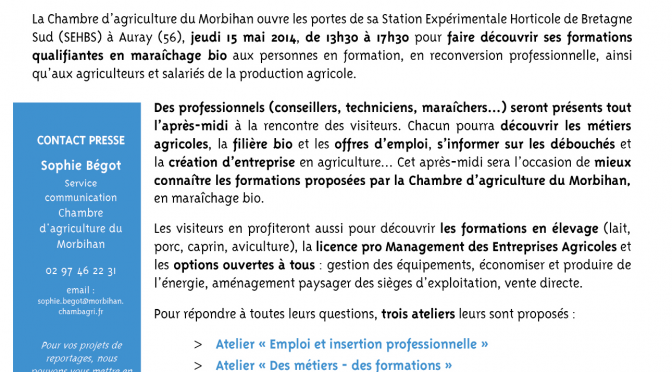 Jeudi 15 mai – Portes Ouvertes Formation en maraîchage biologique