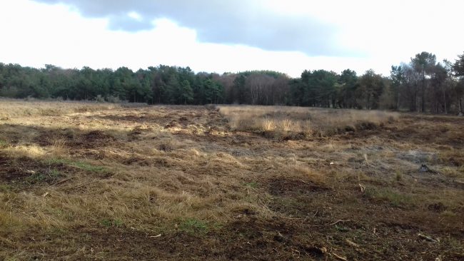 En octobre 2015 nous avons saisi l’oportunité de réaliser l’abattage des pins maritimes, sur la partie sud, en amont de la lande. Ceci visait à redonner à la lande les caractéristiques d’origine qui ont permis l’émergence de toute la richesse biologique actuelle, celle qui fait l’objet de notre projet de conservation.