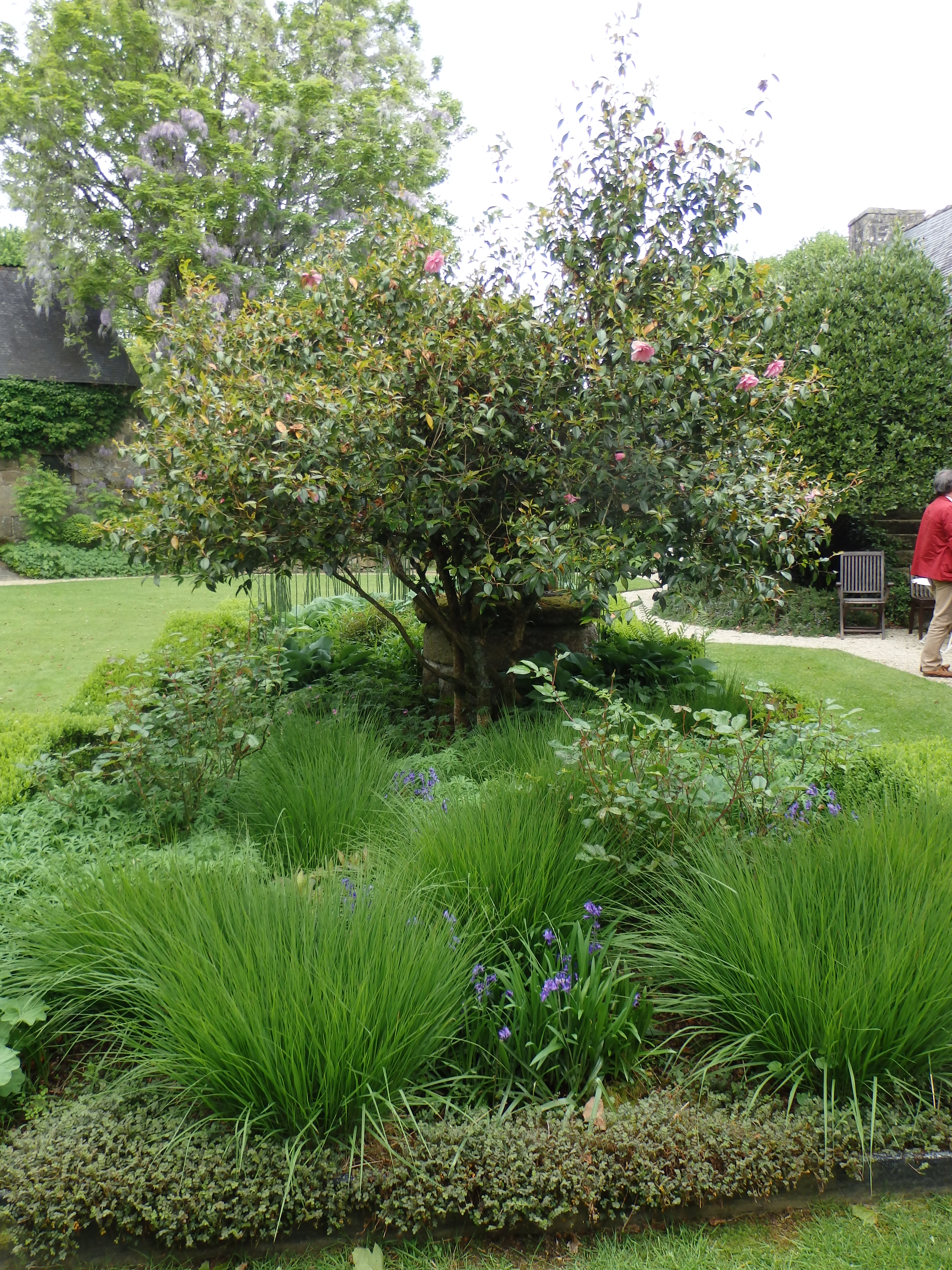 Ce jardin « vert » et reposant fait une place importante à l’art topiaire, une technique qui consiste à tailler et former les végétaux (buis, chênes, hêtres…) en sculptures géométriques ou figuratives. Autour d’un puits, d’une mare, d’un verger, d’un coin de bois, des jardins soignés et harmonieux se succèdent, faisant découvrir des variétés rares de magnolias, des glycines rustiques, des rhododendrons et des lilas en fleurs.