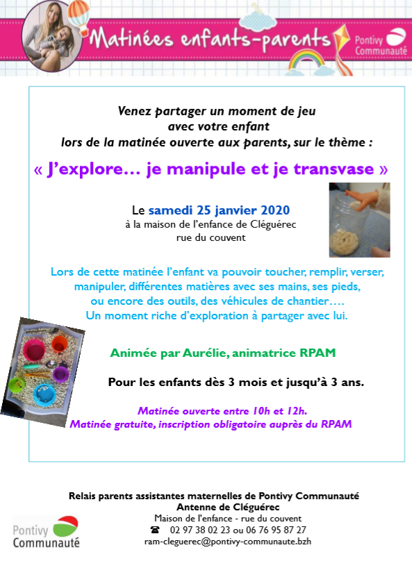 Matinée gratuite et ouverte de 10h à 12h, inscription auprès du RPAM.