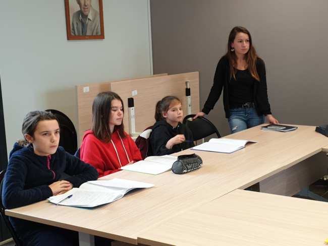 Réunion des enfants du Conseil Municipal en présence d’élus, du Maire et d’Elise , agent communal.