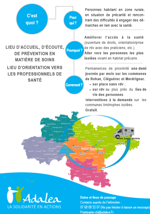 Je vous informe que le Point Mobile Santé de l’Association ADALEA sera présent sur votre commune les mardis suivants :
