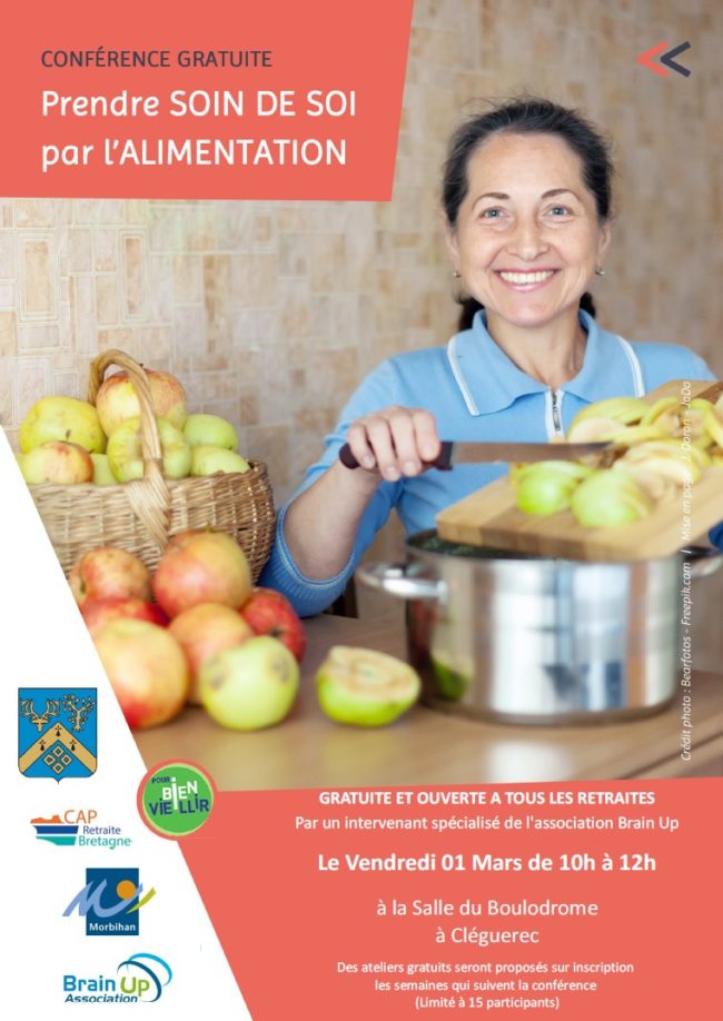 Une conférence gratuite et ouverte à tous les retraités aura lieu le Vendredi 01 Mars de 10h à 12h à la Salle du Boulodrome à Cléguérec. Elle sera animée par une diététicienne.