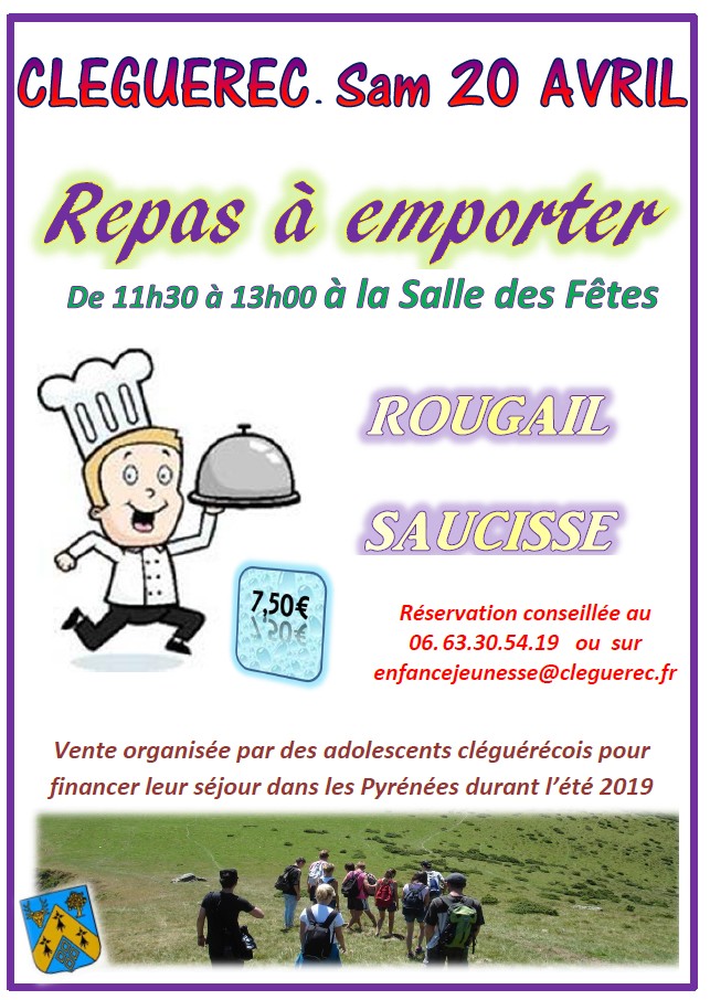 Les adolescents cléguérécois organisent une vente de repas à emporter ROUGAIL SAUCISSE.