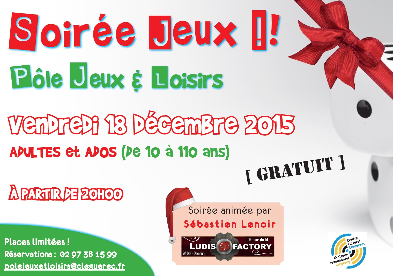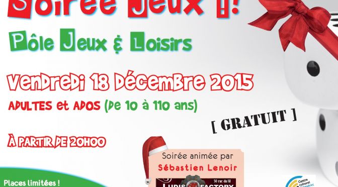 L’espace « Jeux & Loisirs » du Centre Culturel vous propose une nouvelle SOIRÉE JEUX pour bien préparer Noël…!