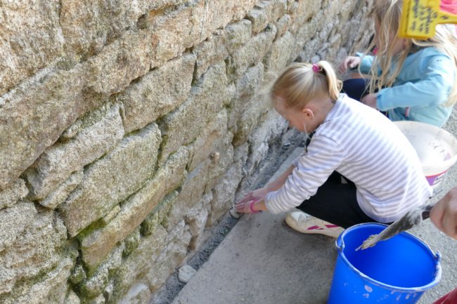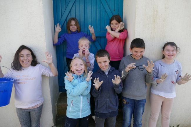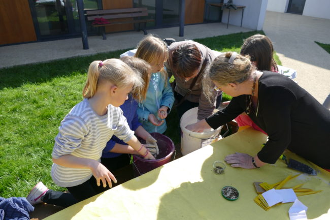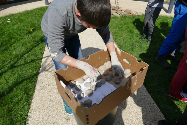 Les enfants du Conseil Municipal ont fabriqué des bombes à graines qu’ils ont déposées au pied des murs de la rue de la Paix à Cléguérec.